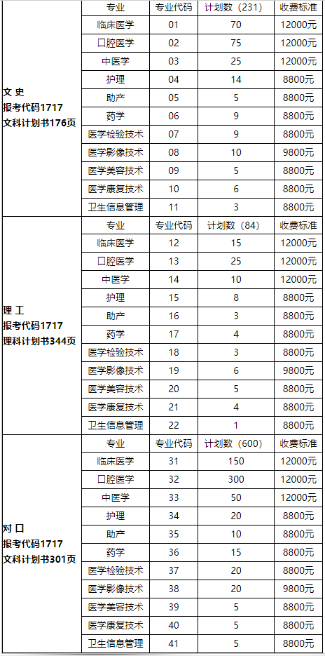 石家莊人民醫(yī)學高等專科學校2022年招生計劃